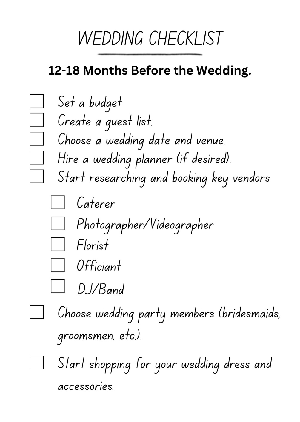 You’ll get 5 pages of a wedding checklist to help you plan the perfect day!